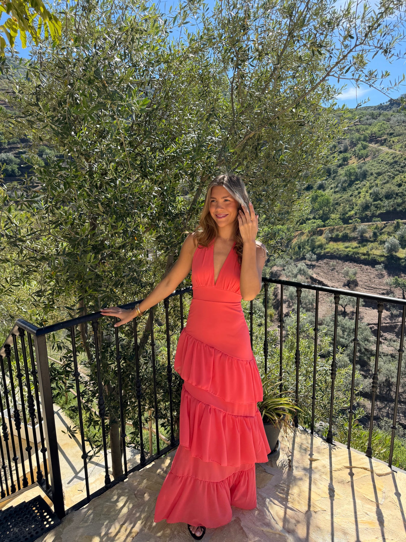 Hailey Maxi Ruffle Dress - Coral