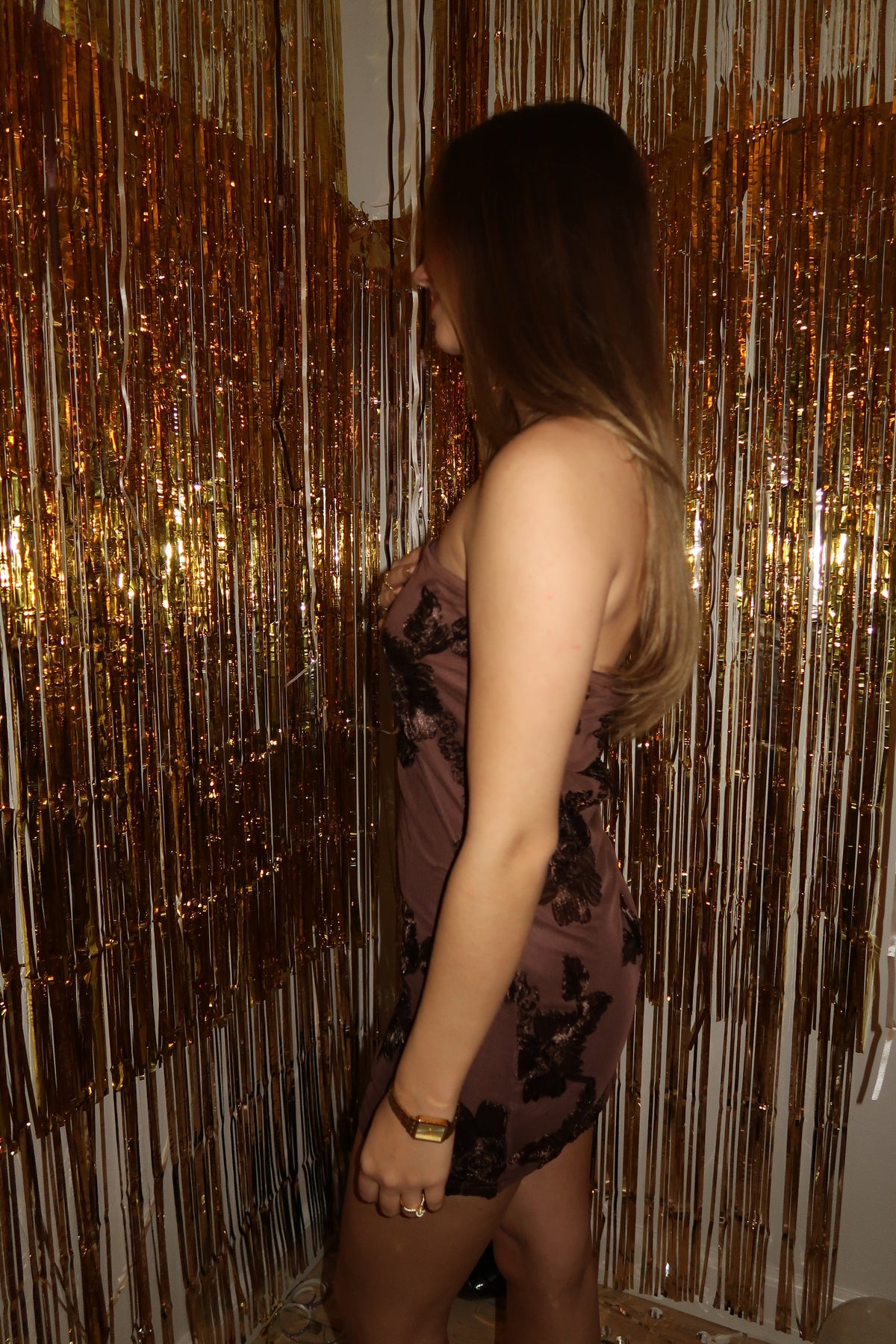 This elegant strappy dress combines a minimalist cut with beautiful, eye-catching embroidered floral details. It adds an exclusive touch and makes the dress ideal for formal occasions, dinners or evening events.