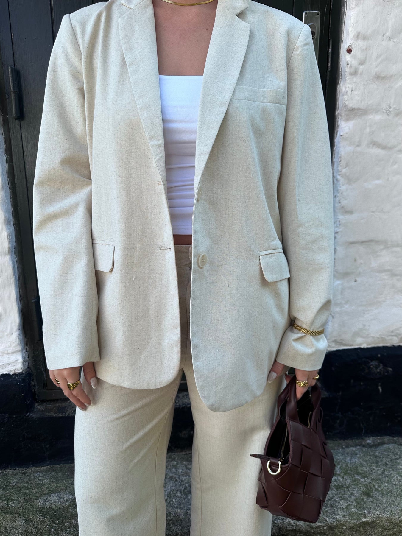 With its soft, light color and casual fit, it's perfect for both everyday and more formal occasions. It sits slightly loose on the body for a relaxed but still stylish look, and the classic button closure and nice pockets make it extra versatile.